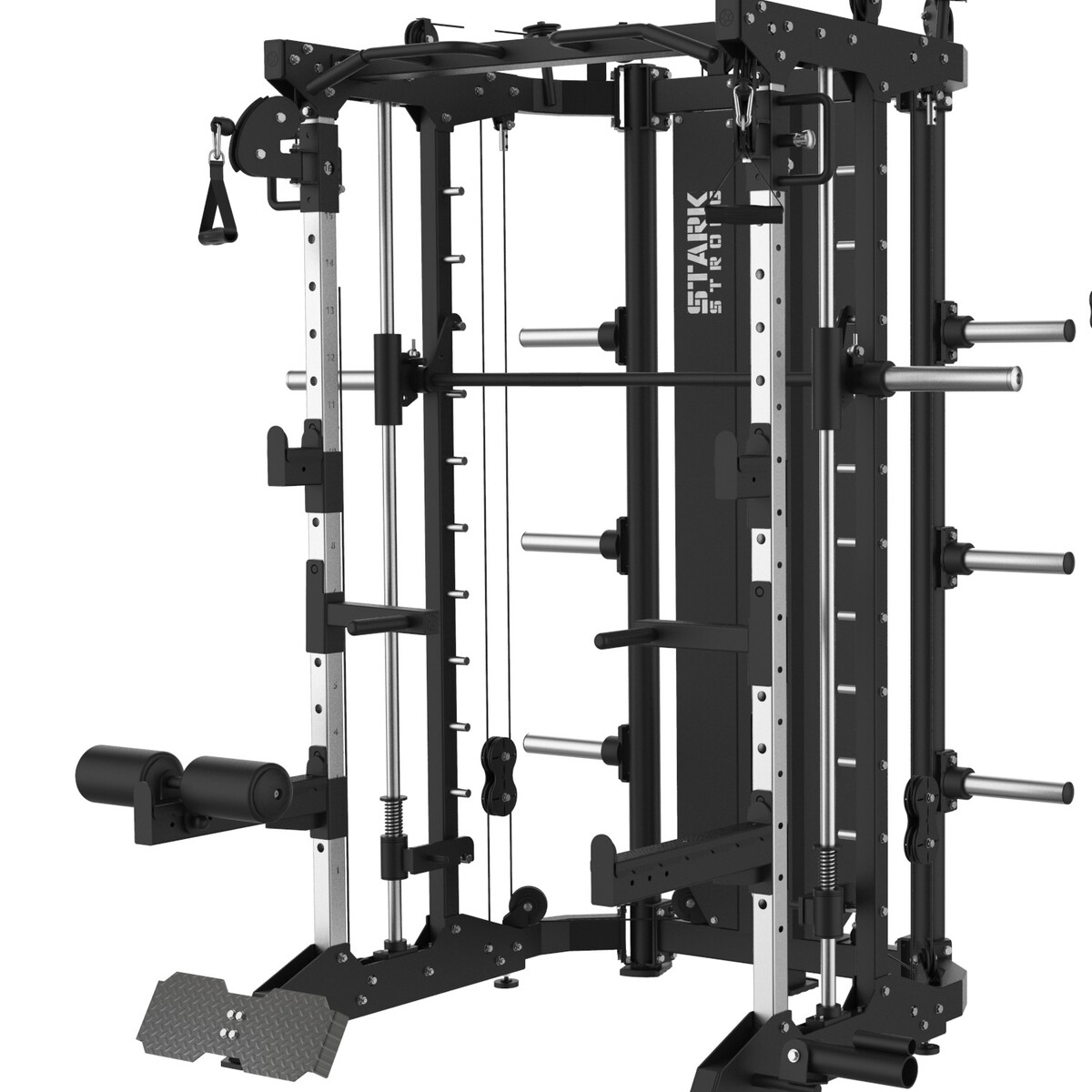 A Smith Multifuncional HSC-SQ7004 com 2 torres de bateria de 80kg é um verdadeiro centro de treinamento completo, que une diversas estações em um só equipamento robusto, moderno e inteligente. Reúne barra guiada (smith), polias ajustáveis com cargas selecionáveis, puxadores, suporte para anilhas, barra fixa e muito mais — tudo isso com altíssima estabilidade e acabamento premium.